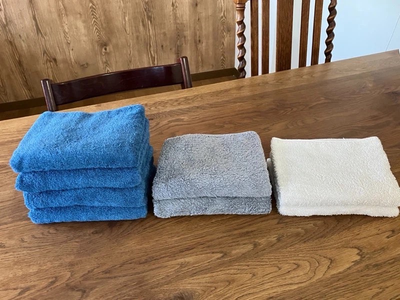 毎朝洗濯するので、この枚数でちょうどピッタリ回ります。もし何かの都合で足りない時には予備タオルを使うので、これまで特に困ったことはありません。